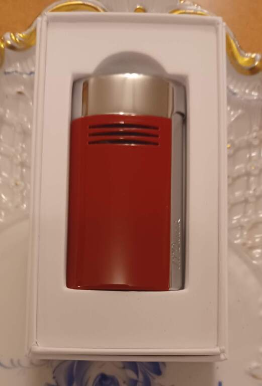 Red Megajet Lighter. Powerful blue flame. Wide and flat flame of 20 mm. 3 air intakes with active charcoal. Ergonomic size. Associated gas refill: black (REF 900430) Lighter delivered empty of gas, refill sold separately