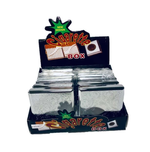 Display 12 pcs. Metal Cigarette Cases – 20 cig. KS – Silver finish – 3 Different Designs